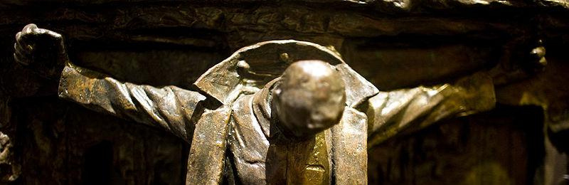 Canada's Golgotha is a 32-inch high bronze sculpture by the British sculptor Francis Derwent Wood, produced in 1918. It illustrates the story of the Crucified Soldier from the First World War and depicts a Canadian soldier crucified on a barn door and surrounded by jeering Germans. Although now on display at the Canadian War Museum, the piece was not exhibited between 1919-89 due to its controversial nature.
