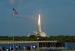 As the sun rises over Launch Pad 39B at NASA's Kennedy Space Center in Florida, the rotating service structure and the arms of the vehicle stabilization system have been retracted from around the Constellation Program's 327-foot-tall Ares I-X rocket, resting atop its mobile launcher platform, for launch.