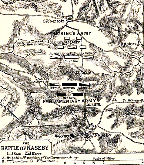 Historical Map of the Battle of Naseby - June 14, 1645.