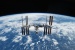 Space shuttle Atlantis (STS-129) high above rugged terrain In North Africa while peforming a flyaround of the International Space Station