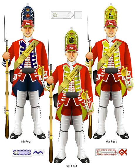 Barrell’s 4th King’s Own Royal Regiment with the 5th and 6th Foot (from Tim Reese’s CD Rom of 20 illustrations of British Regiments as recorded by the painter David Morier.