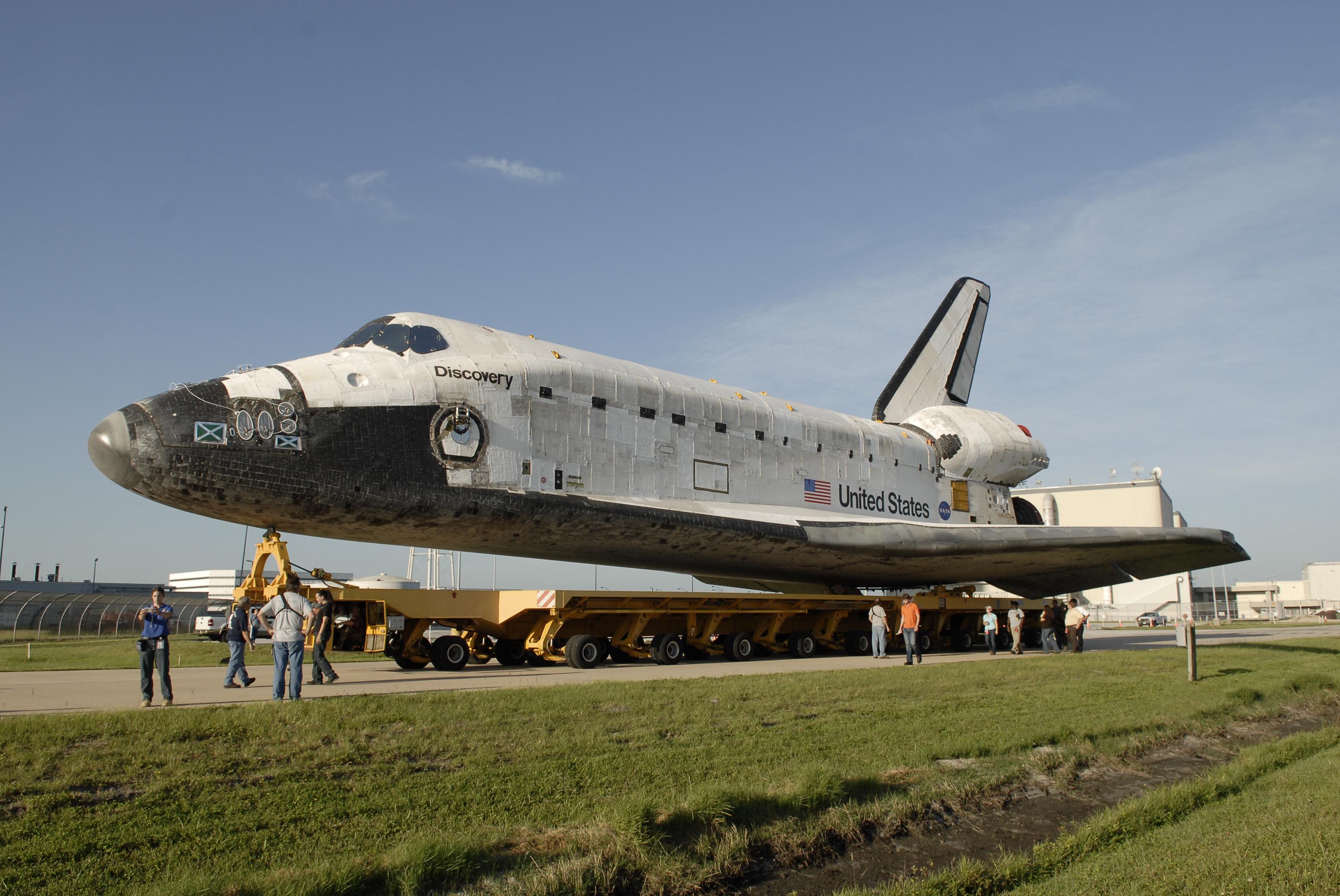 Space shuttle Discovery rolls to the Vehicle Assembly Building at NASA's Kennedy Space Center, Fla. The first motion of the shuttle out from Orbiter Processing Facility 3 was at 7:22 a.m. EDT.