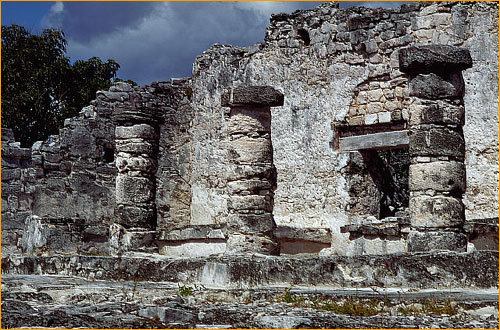 An ancient building at Tulum, on the coast of Quintana Roo, Mexico.