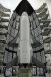 An artist's conception of the X-37 Advanced Technology Demonstrator as it glides to a landing on earth. Its design features a rounded fuselage topped by an experiment bay; short, double delta wings (like those of the Shuttle orbiter); and two stabilizers (that form a V-shape) at the rear of the vehicle.